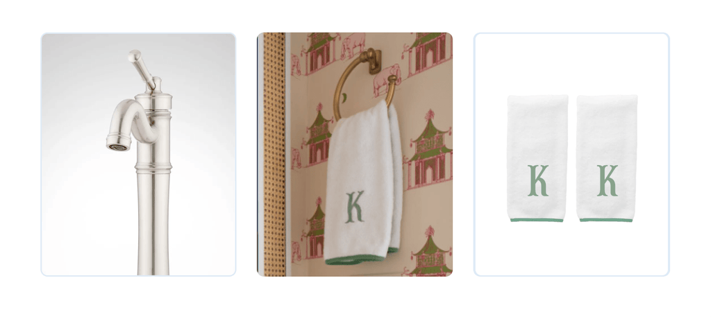 Accessories: Weezie Signature Hand Towels, Designer’s Own Vase