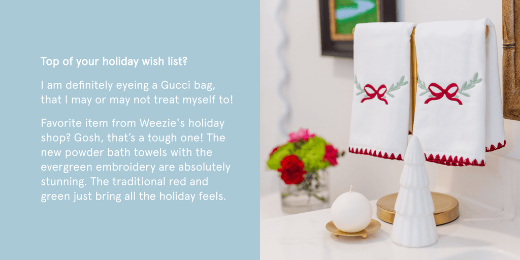 If there's one thing we love, it's getting our home ready for the holidays. What better way to do so than to add some Weezie to make it merry with terry! We partnered with Charley Thompson, or as her followers know her, @adailydoseofcharley, to showcase our new holiday collection and get some expert decor tips. Learn more about Charley and her keen design eye below!