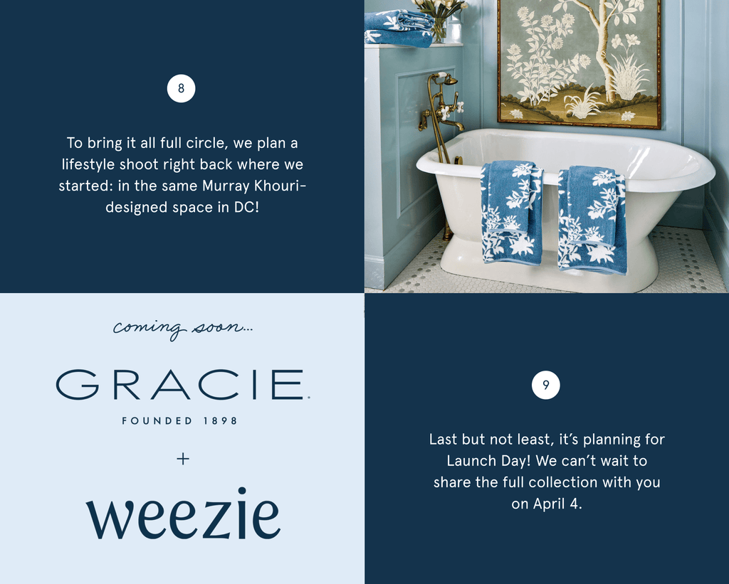 We are proud to announce our upcoming collaboration with luxury design brand Gracie. Launching early April 2023, the collection celebrates craft and heritage, bringing time-honored tradition to terry.