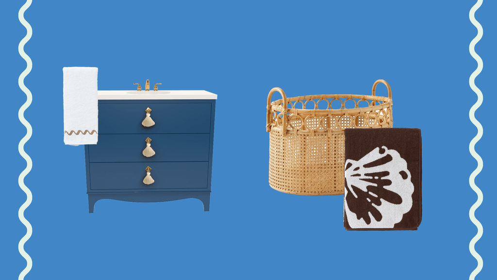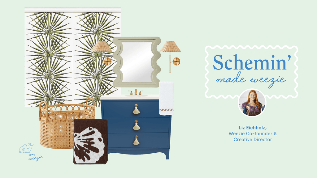 The dog days of Summer are here, but before the seasons change, we had to dream up a pool house powder room scheme. Shop the latest from the desk of our Creative Director, Liz!