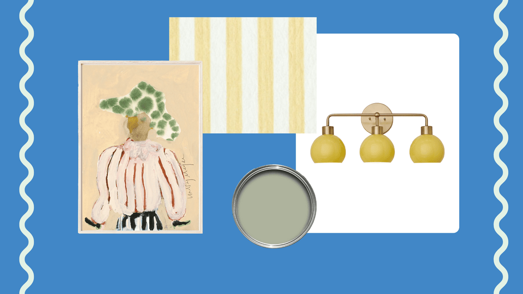 Lindsey Meyer Art: Schumacher Edwin Strip Narrow: Vert de Terre: Young House Love Bubble Pop Vanity Light