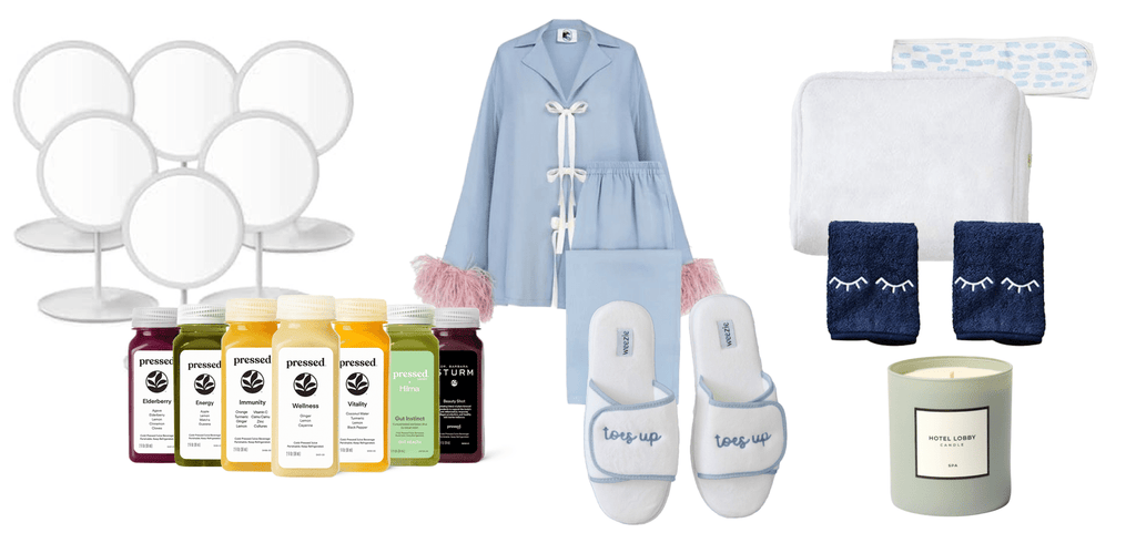 Pressed Juice | Spa Mirrors | Dusty Blue Ribbon | Spa Trays | Skincare Prep Bundle | Slippers | Sleeper Set | Spa Candle